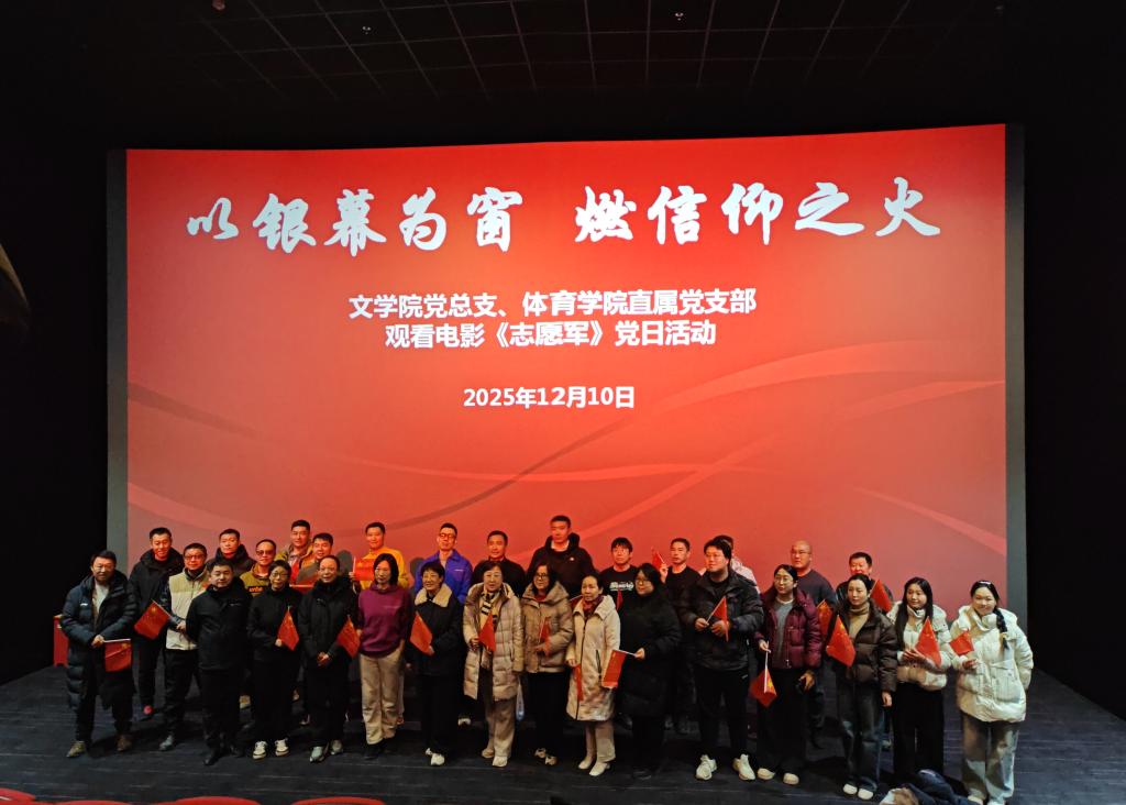 为深入学习贯彻党的二十大精神,深刻领悟和传承以伟大抗美援朝精神为代表的中国共产党人精神谱系,文学院与体育学院党总支于12月10日联合开展“凝聚信仰力量,传承精神谱系”主题党日活动,组织两学院党员师生集中观看红色电影《志愿军》。