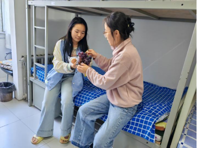 座谈会后,学院领导与辅导员一行深入学生宿舍,开展“关爱进宿舍”走访慰问活动。院领导与同学们亲切交流,详细了解他们的学业进展与生活状况,并亲手送上精心准备的中秋礼包,内含月饼、大枣、南果梨等节日礼品。一声声“中秋节快乐”,一句句“在学校照顾好自己”,传递出学院大家庭的浓浓温情。同学们纷纷表示,虽未能回家团圆,但在校园里同样感受到了家的温暖与节日的喜悦。